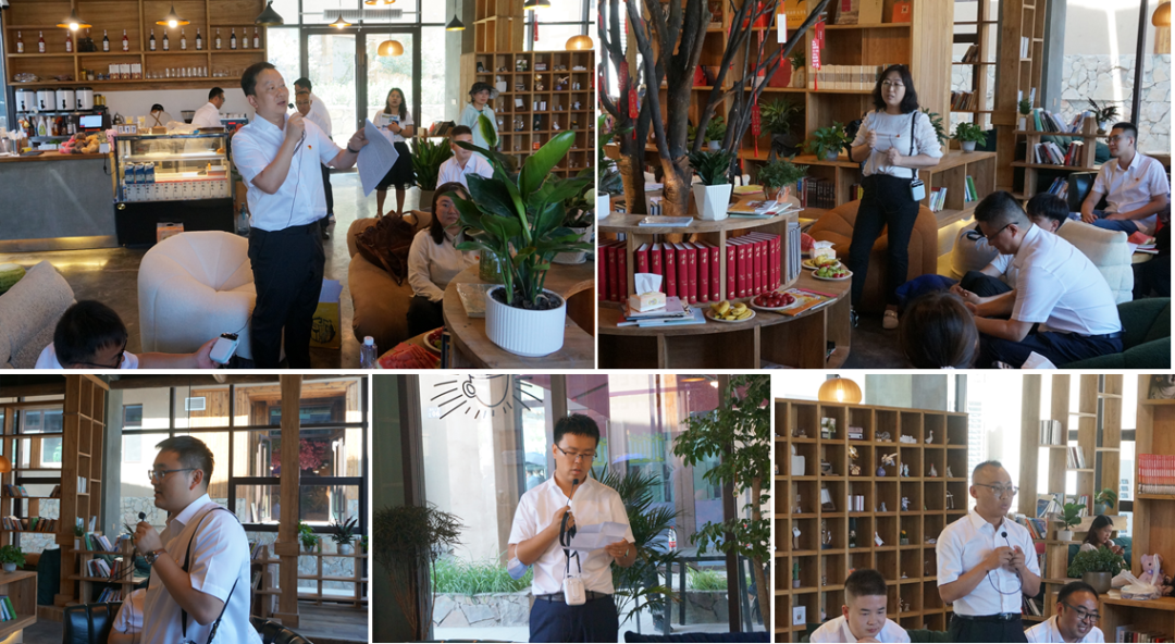 在棲云小鎮書吧開展的“一心永向黨,喜迎二十大”的交流研討會上,羅堯同志代表第五黨支部作主題發言。他首先對參加本次主題黨日活動的同志們表示歡迎和感謝,然后為大家深入講解并解讀了我省第十四次黨代會提出的“一核三帶”省域發展新藍圖和“四強”行動相關要點,并倡議每一位規劃工作從業者應當加強政治學習,提高政治站位,在全面把握全省重大政治任務的前提下,與時俱進,緊密聯系實際開展規劃設計工作,并著眼長遠、聚焦重點,充分發揮技術優勢,助力全面推進甘肅經濟社會高質量發展。黨委辦公室主任樊曉丹同志作了“高度重視黨建工作,推動黨建工作和業務工作深度融合”的主題發言。她首先肯定了第五黨支部一直以來在黨建工作中取得的成績,并鼓勵支部應當百尺竿頭更進一步,積極打造黨建品牌,不斷提升基層黨建工作的引領力、號召力和吸引力。團委書記劉斌同志以《回顧百年團史,匯聚青春力量》為題,講授了一堂生動的黨課,帶領大家一起走進百年團史,追尋信仰之光,勇擔青春使命,倡議廣大團員應當緊跟黨走,擔時代之責,做新征程的奮進者、開拓者和奉獻者,傳遞青春力量,綻放青春芳華,用青春和熱血書寫新時代壯麗篇章。其他黨員及入黨積極分子也從自身學習和工作實際出發,分別就基層黨建、政治理論學習、黨員先鋒模范作用發揮等方面交流了各自的所思所感。