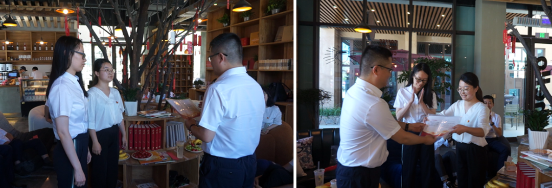 活動舉辦當天,恰逢黨員袁田同志和仲亞男同志的“政治生日”,為了讓黨員同志們切實感受到來自黨組織的溫暖與關懷,引導廣大黨員進一步強化身份意識、宗旨意識和責任意識,交流會現場還為兩位黨員同志舉辦了一場特別的“政治生日會”,為她們送上一張特制的“生日賀卡”、一枚新黨徽、一本新黨章,以極富儀式感的活動形式,提醒激勵黨員同志們要時刻謹記黨員職責,不忘初心、牢記使命,在工作和生活中時刻以黨員標準嚴格要求自己,切實發揮黨員干部的先鋒模范作用。