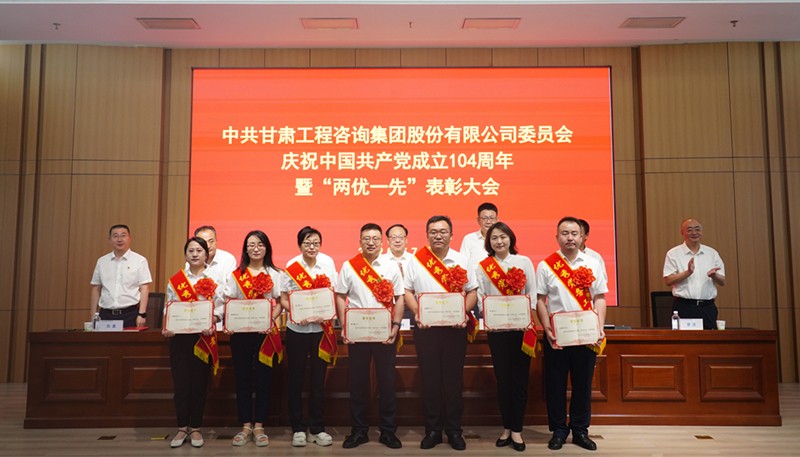 7月1日,甘肅工程咨詢集團(tuán)召開慶祝中國共產(chǎn)黨成立104周年暨“兩優(yōu)一先”表彰大會,回顧黨的輝煌歷程,弘揚(yáng)偉大建黨精神,全面展示集團(tuán)黨建工作成效和黨員干部昂揚(yáng)風(fēng)貌,激勵(lì)各級黨組織和全體黨員凝心聚力、擔(dān)當(dāng)作為,奮力推動(dòng)集團(tuán)公司高質(zhì)量發(fā)展邁向新臺階。集團(tuán)公司黨委書記、董事長張佩峰出席并講話,總經(jīng)理、董事陳一夫及在家領(lǐng)導(dǎo)班子成員出席,黨委委員、副總經(jīng)理孟康榮宣讀表彰決定,紀(jì)委書記、監(jiān)察專員師宗正主持會議。