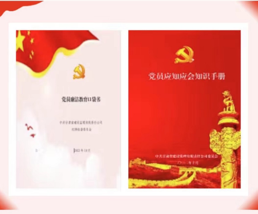 活動中,建設監理公司黨委還為黨員精心制作了《黨員廉潔教育口袋書》及《黨員應知應會知識手冊》,篩選出黨紀黨規、黨建常識、名言警句、家風家教、廉潔從業等各方面的常用知識,方便黨員學習使用。此次系列黨建活動不但拓展了黨員干部職工的學習途徑,豐富了黨建宣傳形式,更有助于進一步提升黨員的政治素質和對黨建工作的認知,凝聚廉政廉潔、風清氣正的思想共識。