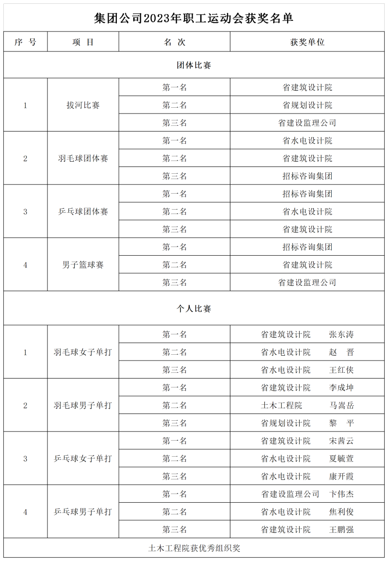 (乒乓球團體賽一、二、三等獎)