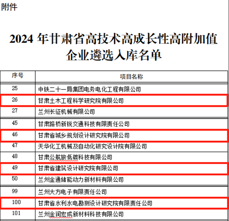 甘肅工程咨詢集團4戶企業入選2024年甘肅省高技術高成長性高附加值企業名單
