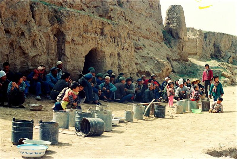 上世紀70年代,甘肅中部的定西等十多個縣大旱,數百萬群眾等待政府送水(來源:甘肅省水利廳網站)