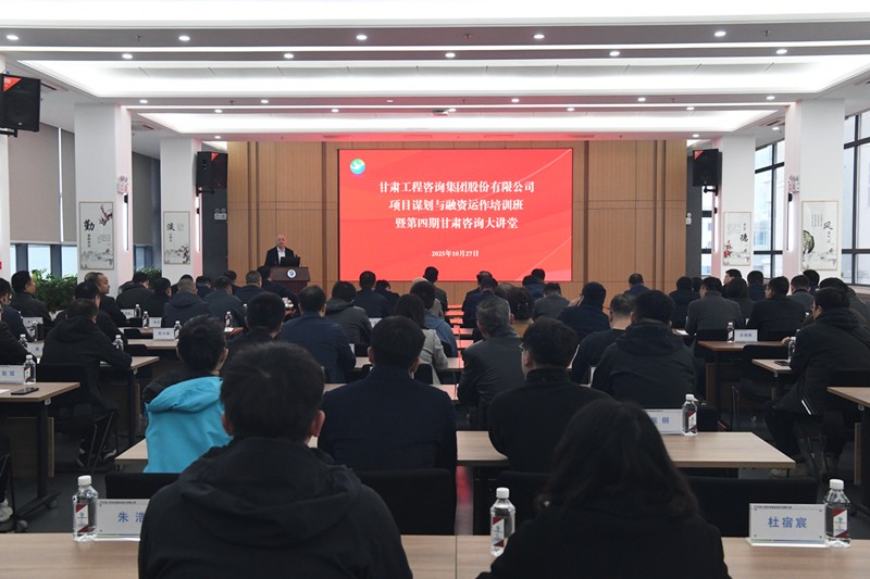 10月27日至28日,甘肅工程咨詢集團舉辦“項目謀劃與融資運作培訓班暨第四期甘肅咨詢大講堂”。活動聚焦項目統籌謀劃與融資運作能力系統提升,通過案例分享、專題培訓、內部研討等形式,提升專業技術人員項目謀劃與融資能力。集團公司黨委書記、董事長張佩峰,總經理、董事陳一夫,黨委委員、副總經理孟康榮、白鑫、賈志堅出席,副總經理曹慶主持。