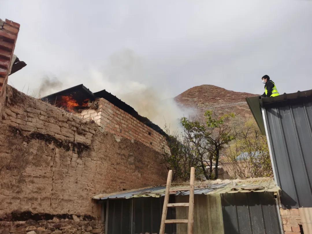 10月30日下午3點,交通監理公司負責幫扶的臨潭縣洮濱鎮馬旦溝村一戶村民家中突然冒出滾滾濃煙,火光在濃煙中忽隱忽現。著火是一座磚木結構彩鋼屋頂的新房,火從屋頂燒起,越燒越旺。著火的房屋旁邊堆放著多年的老柴火,干燥異常,一絲火星就能點燃,而與著火點緊鄰著的就是布局緊密的鄉親們的房屋,再往外圍則緊接著山林,如果火勢蔓延,后果將不堪設想。