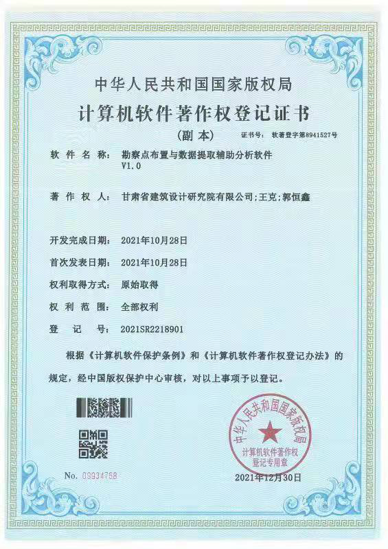喜報!甘肅省建筑設計研究院有限公司勘察領域軟件獲國家著作權