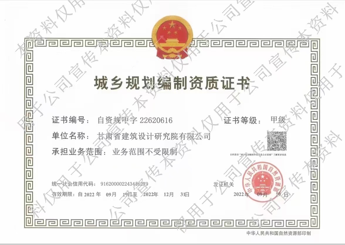 日前,國家自然資源部發(fā)布《自然資源部關于2022年第六批城鄉(xiāng)規(guī)劃編制單位甲級資質認定的公告》,甘肅省建筑設計研究院有限公司名列其中,喜添城鄉(xiāng)規(guī)劃編制甲級資質。