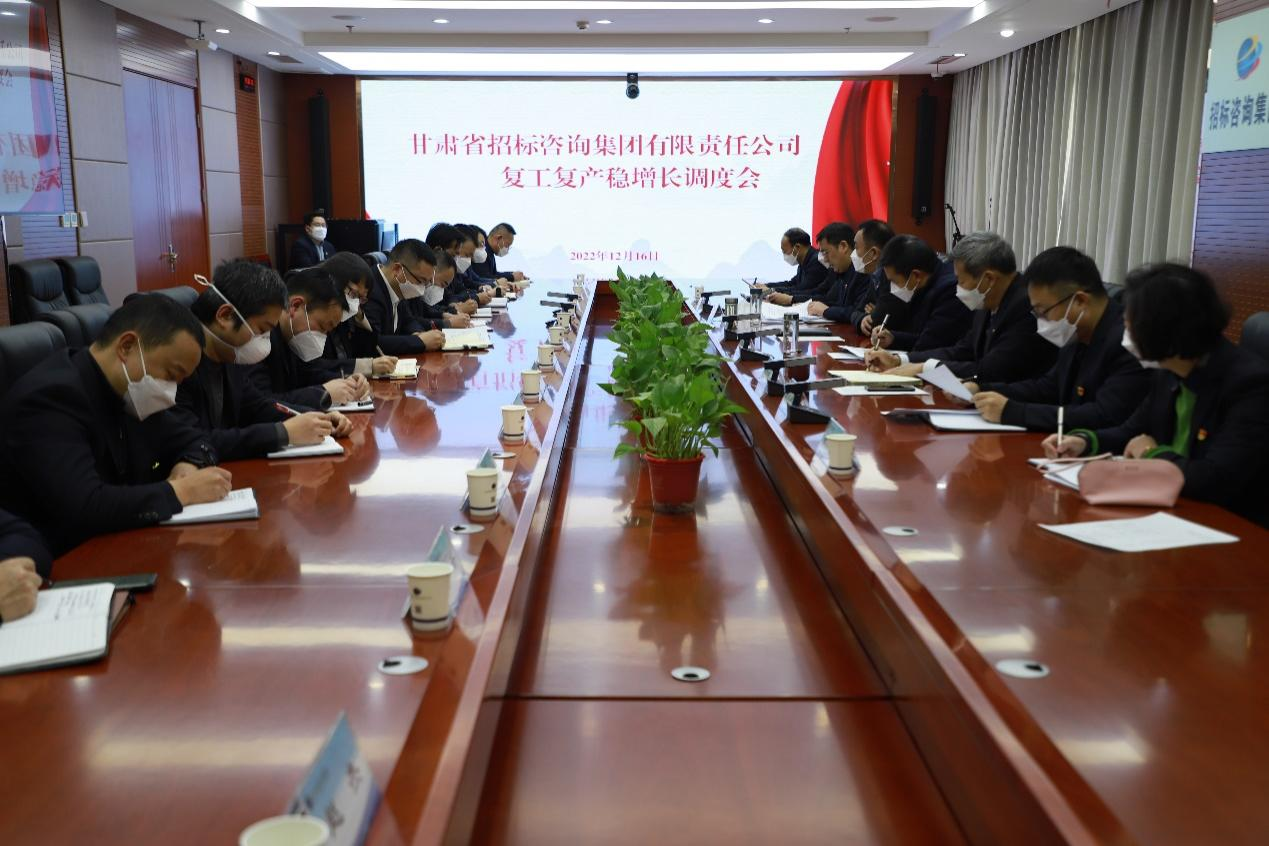 近日,甘肅省招標咨詢集團有限責任公司召開復工復產穩增長調度會,傳達學習全省工業復工復產穩增長調度會和集團公司復工復產穩增長調度會精神,分析1-11月生產經營情況,安排部署近期及來年相關工作。會議由公司黨委書記、董事長牛茺主持。招標咨詢集團領導班子成員、機關各部門及各子公司負責人參加會議。招標中心、金安公司作交流發言。