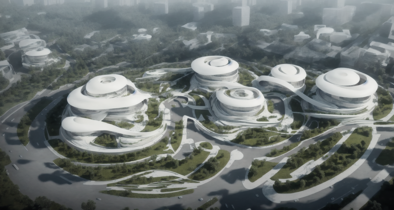 自AI繪畫逐漸走入大眾視野,人工智能作為一種可以模擬人類智能的技術,被廣泛應用于建筑領域,成為建筑設計師的重要輔助工具。省建筑設計院設計創作團隊積極響應數字化建設,在多個項目上進行人工智能技術、參數化技術的創作實踐,完成了建筑方案設計創新。該設計創作團隊把AI建筑方案設計全過程植入“臨夏市西部文化組團局部地塊方案設計項目——博物館建筑設計”,從理念和形體出發,對原設計進行深化,完善方案初期設計構思。在空間方面,建筑形體通過中間體塊的串聯,將五個圍合性的內向空間結合景觀依次展開,并將中間主館部分抬高處理,強化了主館在整個博物館群中體量上、視覺上的分量。在景觀方面,建筑與環境融合更加渾然一體,達到和諧共生。此外,研究團隊還對景泰縣游客集散中心、景泰中心、臨夏市花兒博物館等項目進行了AI設計比對探索,使AI在設計初期的優勢進一步顯現。