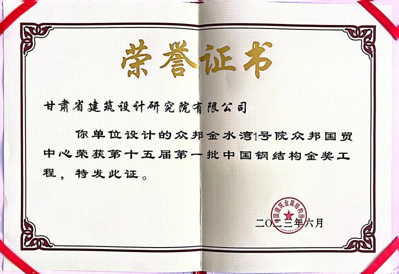 近日,從中國建筑金屬結(jié)構(gòu)協(xié)會傳來喜訊,由省建筑設(shè)計院總建筑師、甘肅省工程勘察設(shè)計大師馮志濤領(lǐng)銜團(tuán)隊設(shè)計的“眾邦國貿(mào)中心”榮獲“第十五屆第一批中國鋼結(jié)構(gòu)金獎工程”榮譽(yù)稱號。