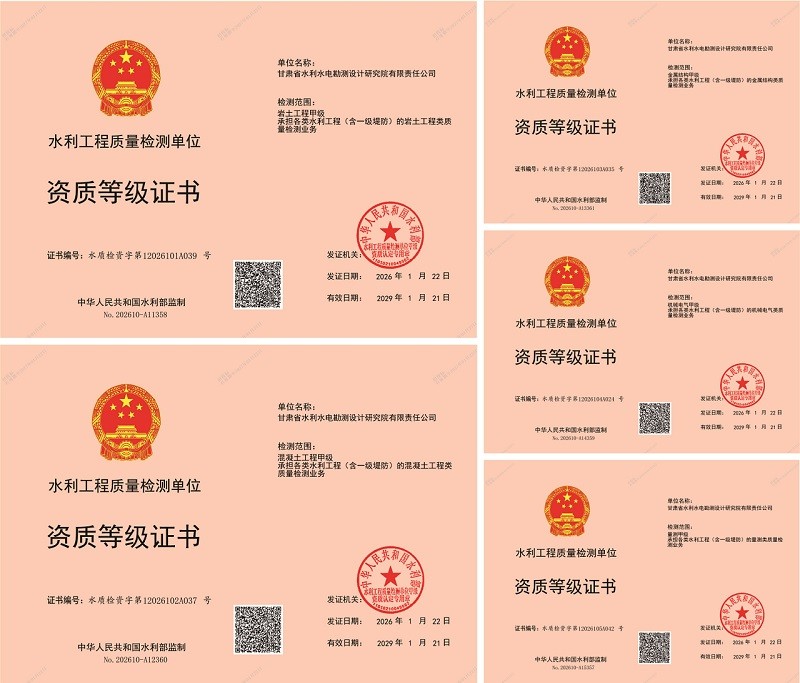 省水電設(shè)計(jì)院獲批五項(xiàng)水利工程質(zhì)量檢測(cè)甲級(jí)資質(zhì)