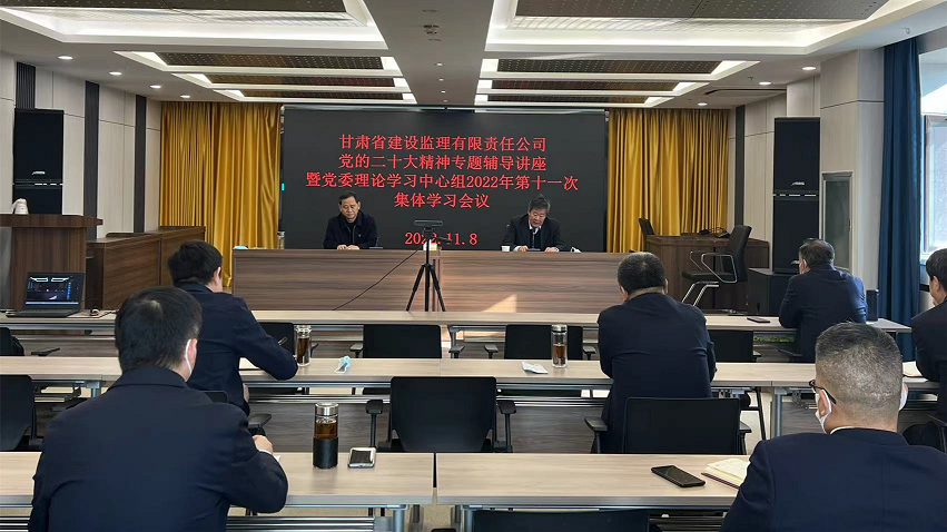 11月8日,甘肅省建設監理有限責任公司召開2022年黨委理論學習中心組第十一次集體學習(擴大)會議,邀請省委黨校李景銘教授作黨的二十大精神專題輔導講座。會議以“線上+線下”形式召開,黨委書記、董事長魏和中主持,領導班子成員、中層干部參加。